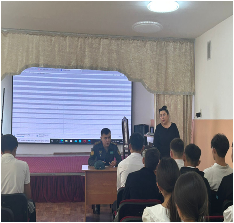 Абай облысы білім басқармасы Аягөз ауданы білім бөлімінің "Дулат Бабатайұлы атындағы ЖОББМ" КММ-де "Біртұтас ел-біртұтас жер" тақырыбында Аягөз қаласының қорғаныс істері жөніндегі біріктірілген бөлім бастығының орынбасары капитан Рамазанов Алмас Қалымбекұлы және инспектор Ахметова Алинур Фатколлаевна, 10810 әскер бөлімінің 3 батальон командирінің тәрбие жөніндегі орынбасары аға лейтенант Өмірзақов Дінмұхаммед Нұрлыбекұлы 9-11 сыныптарға ерлік сабағын өткізді.Ерлік сабағының мақсаты әскери-патриоттық қозғалыс тәрбиеленушілерінің туған еліне, жеріне, Қазақстанның Қарулы күштеріне деген патриоттық сезімін қалыптастыру. Оқушыларға әскери бөлімнің тыныс тіршілігімен таныстырып, әскери бөлімге қалай оқуға түсуге болатынын түсіндірді.