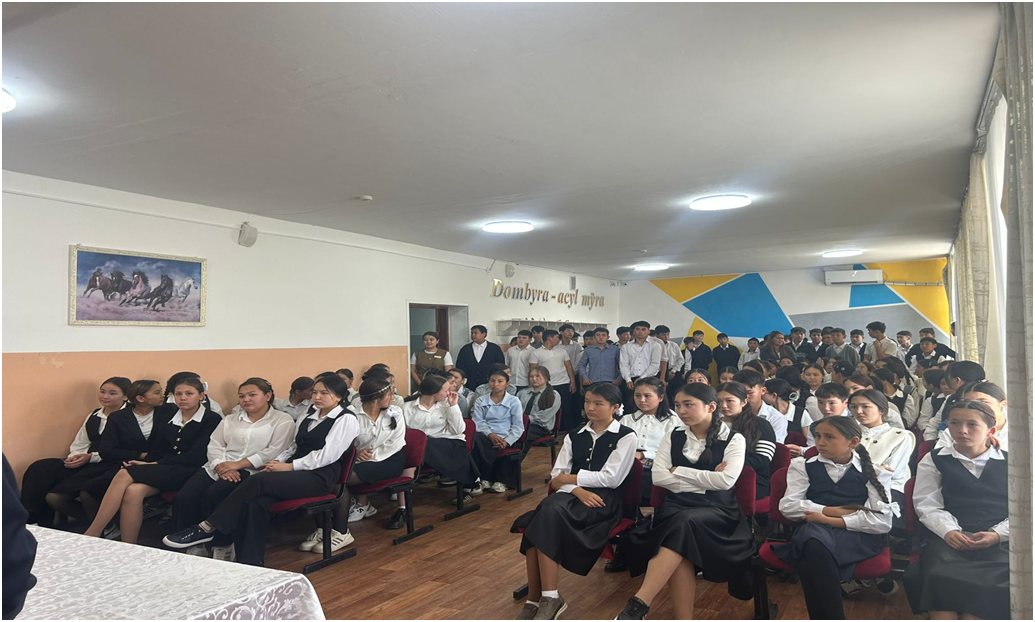 19  қыркүйек «Таза Қазақстан» тақырыбында 7 – 11 сынып оқушылары арасында түсіндірме жұмыстары жүргізілді. Жиналысқа Аягөз АПБ ЖПҚб КТІЖ аға УПИ полиция капитаны Кажиғалиев Ерзат Ерғалиұлы және мектеп әкімшілігі, сынып жетекшілер қатысты.