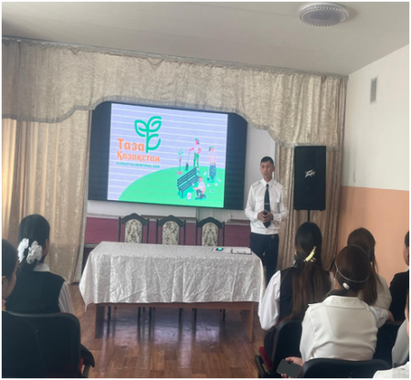 Мақсаты: Экологиялық мәдениетті таратту. «Таза Қазақстан» акциясы – бұл жай ғана ұран емес еліміздегі өзекті экологиялық мәселелерді бағытталған кешенді бағдарлама. Қоршаған орта халық денсаулығының кепілі.Табиғатты аялау оның байлығын болашақ ұрпақ үшін сақтауға мүмкіндік береді.