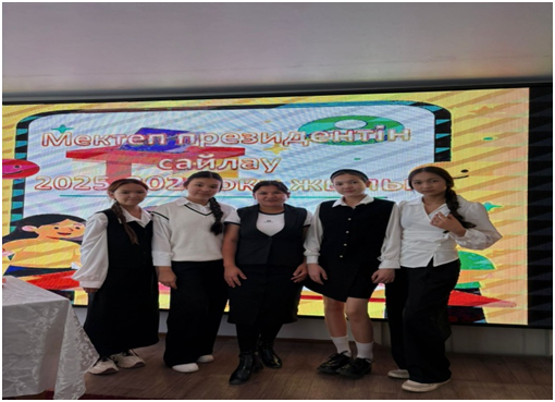 Мектептің өзін-өзі басқару Президенті болып 10 «А» сынып оқушысы Мусаева Іңкар сайланды, және президент орынбасары болып 9 «Ә»сынып оқушысы Аймұхамбет Каусар сайланды. Қалған үміткерлер фракция жетекшілері болады.