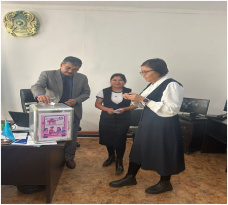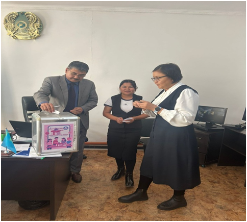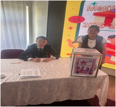 Мақсаты: Мектептегі өзін-өзі басқаруға қатысу оқушылардың өз бетінше әрекет етуін, стандарттан тыс ойлауын қалыптастыруға көмектеседі, өз идеяларын жүзеге асыруға мүмкіндік береді. Сайлауға 5 үміткер тіркелді. Барлық балалар мектеп оқушыларының өзін-өзі басқару мүшелігіне лайық, мектеп іс-шараларына белсенді қатысады, мектепті жақсартуға үлкен дайындығы бар. Сайлау өте белсенді және қызықты өтті. Комиссия мүшелері болып педагог ұйымдастырушы Умралиева М.К, ал бақылаушылар болып Сақанова К және Советова А тағайындалды. Барлық үміткерлер лайықты болғанымен, мектеп оқушыларының өзін-өзі басқару Президентінің дауыс беру нәтижелері келесідей болды: