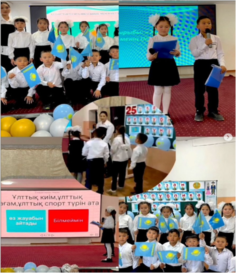 Оқушылар өлең оқып, бейнематериалдар тамашалап, «Менің Қазақстаным» тақырыбында өз ойларымен бөлісті.