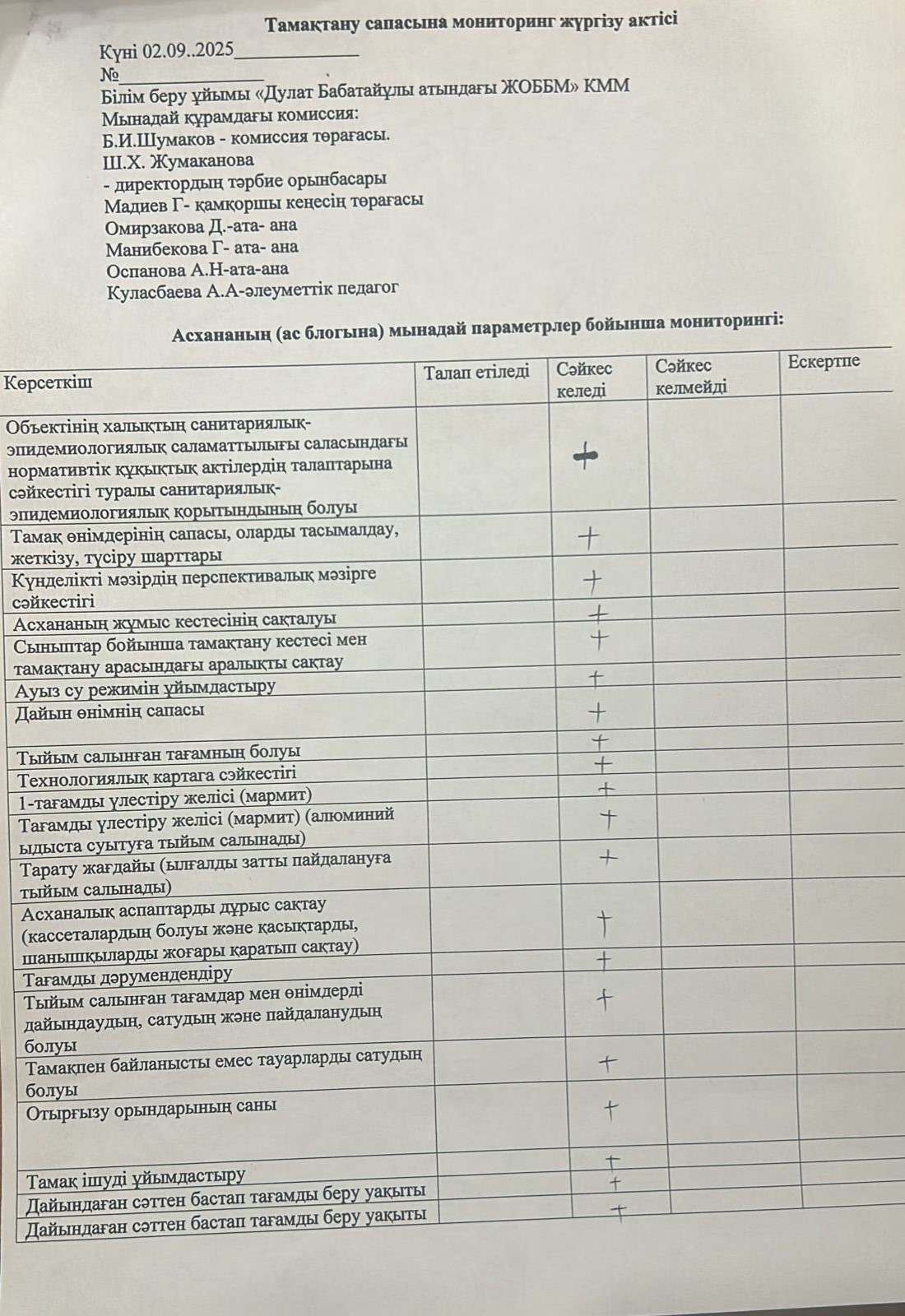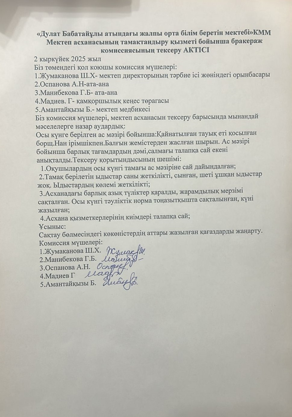 Мектеп сайты » Питание » Бракераж комиссиясы